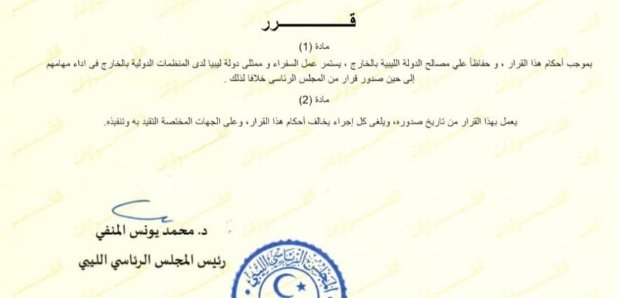 Al-Menfi attributed his decision to the public interest. It also aims to preserve Libyan state interests abroad. Article Two of the decision…