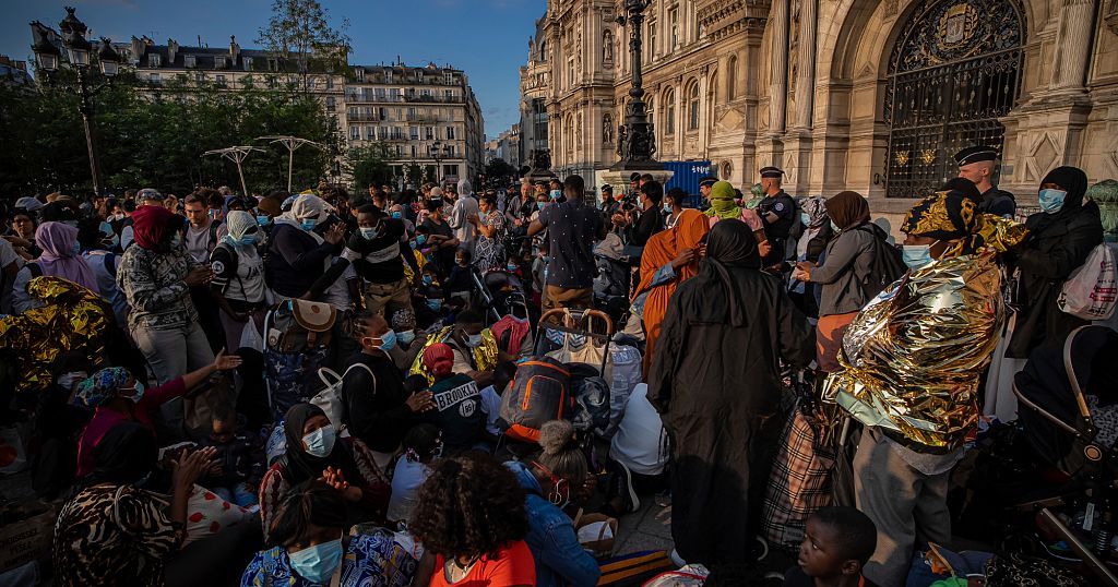 The humanitarian group Utopia 56 staged a protest Tuesday night outside Paris City Hall with about 200 migrants, including families, to demand emergency shelter and denounce public policies they describe as “increasingly aggressive” toward homeless people.