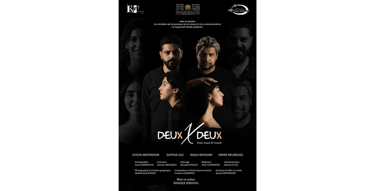 Beyond the initial event, the play explores family relationships, children, daily life, and the personal visions of the characters within Moroccan society,” reads the presentation. “Deux fois Deux” features performances by Ayoub Abounnasr, Rajae Bouhami, Zaynab Alji, and Amine Belmaaza.