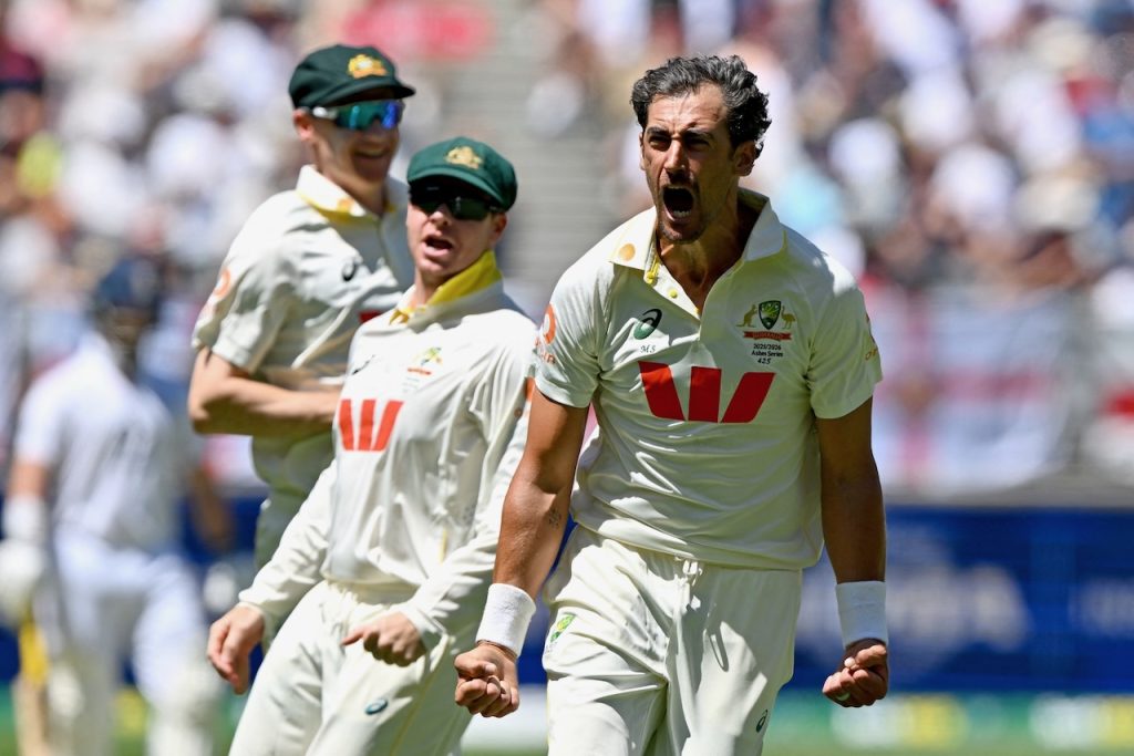 A rampaging Mitchell Starc took 7-58 to put England on the back foot after Stokes won the toss on a fine day at a packed Perth Stadium and chose to bat.