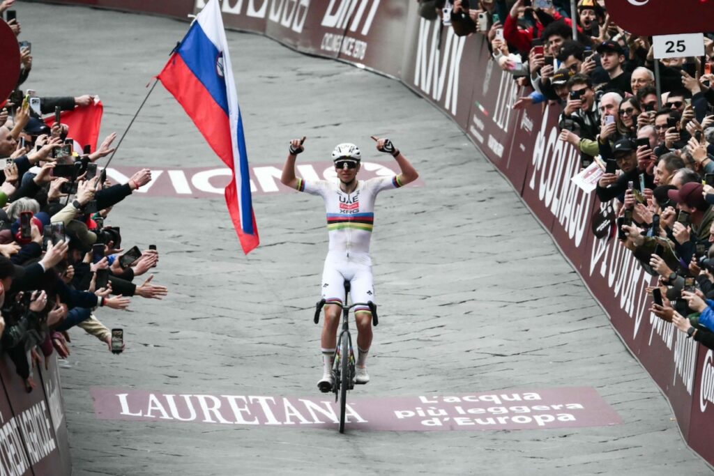 Pogacar made a typically devastating long-range break around 80-kilometres from the finish, after which it was a procession to the line in Siena for his third win in a row there.